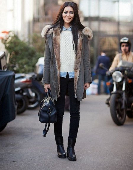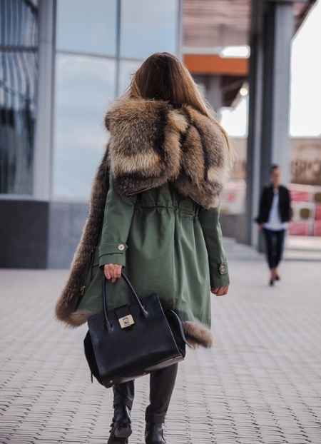 A parka with a hood with fur is an alternative to an expensive fur coat. It also retains heat and is great for everyday wear, which no fur coat can boast of. With the park, you can combine different images - from the coquette, to casual and sports.