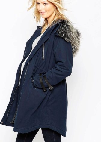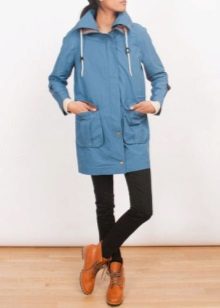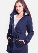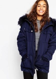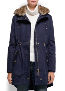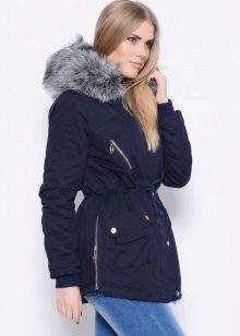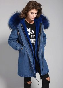 Warm blue parkas of a sports type differ from the classic ones except for a shorter length; here, the length to the middle of the thigh is more common. If a hood is present, then it is usually comfortable, deep, often insulated with fur. It can be a transforming hood, folding with two zippers with the help of a vertical zipper and turning into a wide collar.