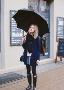 In the cold, do not forget about the headdress, the ideal option is a light knit hat with a large pompom. A long knitted scarf or snood, tied over the hood, will be a good addition to the winter look. In winter, a Timberland-style boots or flat boots are a perfect match for a blue parka. A bag is better to choose a voluminous, not catchy neutral shade.