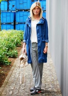 With a blue parka, skinny pants in gray shades or jeans look great. Upstairs you can wear a loose-fitting sweater. As shoes for fall and spring, we recommend boots and low shoes without heels, oxfords or brogues made of natural materials. With glamorous parkas, tight-fitting turtlenecks and heeled ankle boots look good.