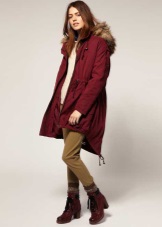 Today, jackets up to the knee or slightly higher are relevant. The military style is very popular. Such jackets are sewn from coarse materials, which makes them even more practical.