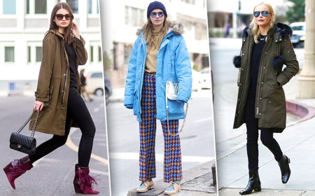 Military-style parks have neutral colors (green, brown, gray) and are suitable for every day - they are not afraid of dirt and dampness. Monochrome bright parks of black, blue, red, orange and other colors are also popular.