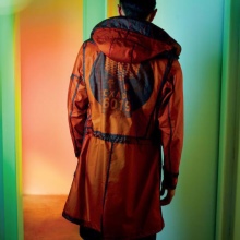 - Reflective Jacket. The result of another experiment. The material - Japanese engineering - is mottled with the smallest glass elements. This is an improved variation of the previous model, capable of not only reflecting light, but also capturing even its weakest signals. The jacket is also water repellent.