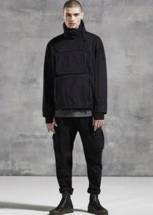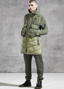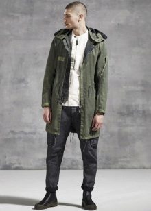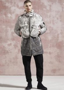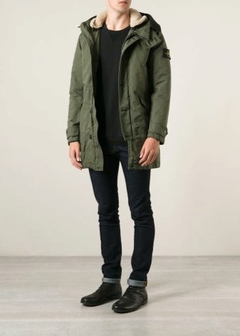 Stone Island men's parks received recognition when they acquired the forms that are now considered classic for this type of outerwear. The cut became exceptionally elongated, the hood was invariably accompanied by fur trim. All parks also began to be equipped with a number of mandatory elements: removable parts, a high collar and additional inner cuffs, a drawstring on a cord in the hood and lower hemline (sometimes even in the waist area).