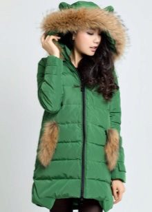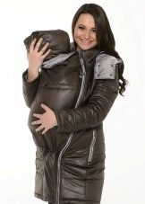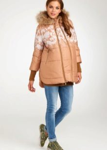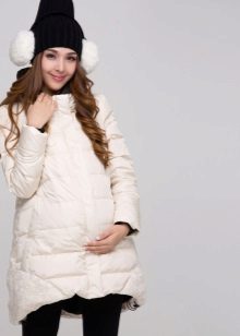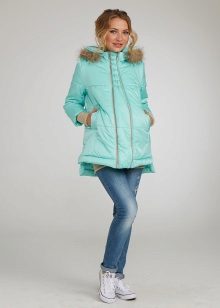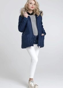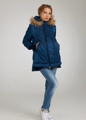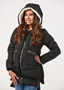 - In the current fashion season, the most popular styles of such a variety of winter clothes for pregnant women, like parka jackets, is an elongated cut model, which due to its length can well serve as an equivalent replacement for traditional down jackets. Designers actively decorate the hoods of such jackets with fur, which not only adds elegance to these extremely pragmatic things, but also clearly emphasizes their seasonal affiliation.