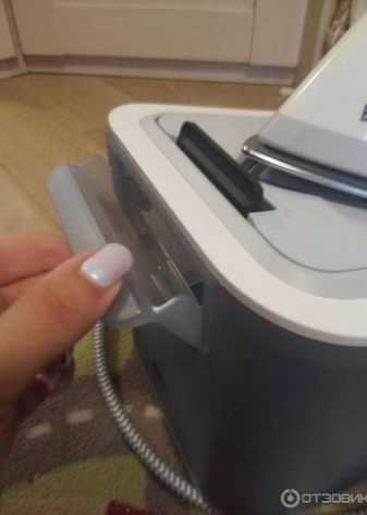 - Each appliance uses a boiler, which is made not only of durable material, but also has a rather large volume. Therefore, in the process of ironing and steaming the laundry, you do not have to constantly add water to it.