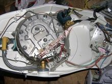 - Having removed the case, you can see the coil. It must be replaced. It is mounted on just one nut.