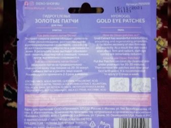 - With snail mucin filtrate. Ultra-moisturizing composition, providing additional lightening of dark circles, providing a light antiseptic effect. The skin after applying the patches becomes elastic, the tug is restored.