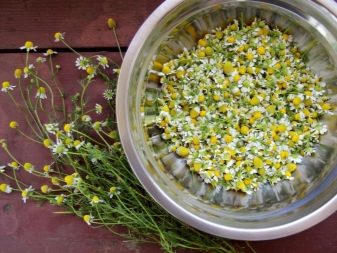 Dry chamomile flowers, mint leaves, finely chopped parsley are poured with boiling water, insist on a water bath. Then the composition is filtered. In the resulting broth, wipes are moistened and applied to the eyes.
