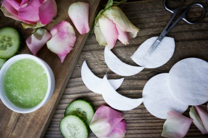 Can cook oil-based patches, mixing olive and almond, adding a few drops of squeezed lemon. After soaking cotton pads in the composition, they should be placed under the eyes.