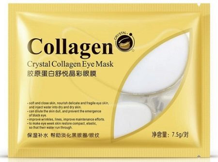 - Efero Gold Crystal Collagen Eye Mask. Patches from the Efero brand have a similar effect. The product is sold in separate packages of 2 pieces. Gold pads are easy to use. The composition includes the following elements: vitamins (E, C and B5), collagen and hyaluronic acid. The product has a powerful calming and cooling effect. It gives a pleasant sensation, refreshes the skin, eliminating traces of fatigue.