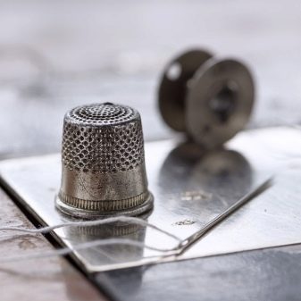 - Thimble - a tool to protect your fingers during manual sewing. He should sit tight and not squeeze his finger. For its manufacture, plastic and metal are used.