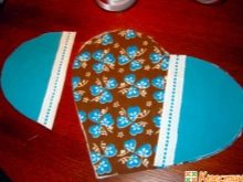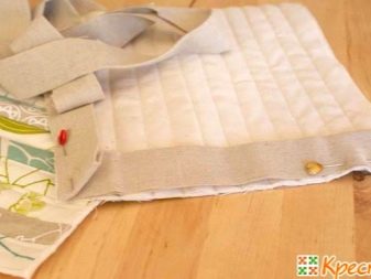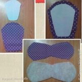 - According to the second pattern, a blank is cut out of colored fabric for the upper sidewalls, from a plain one - for the lower. Details are folded in pairs with the wrong side to each other, fixed with pins.