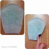 - After duplication of the outer part of the wing with a synthetic winterizer, fold the parts with their faces inward and sew them together on the outside of the wing. Make a few cuts along the fold line (otherwise the wings will puff up). Unscrew and make a stitch to the width of the foot from the seam.
