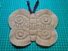 - Each detail of the base is duplicated with a synthetic winterizer. Parts are folded face inward. For the antennae, 2 fragments of braid are cut off, they need to be chopped and laid 2 lines. Incisions are made at the base of the wings, the butterfly eversed.