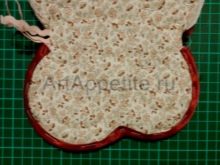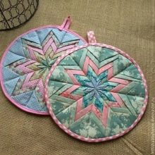 - Another version of a very beautiful round potholder. The most delicate fabrics, sector sewing, taping are suitable for a kitchen decorated in romantic, calm colors.