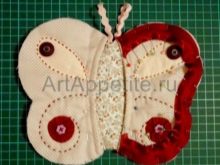 - Next, you need to make a decorative stitch - you can arbitrarily, you can according to the drawing. The wings are decorated with applique. It can be different beautiful fragments, buttons, anything.