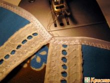 - Slices are processed oblique inlay. For processing, decorative stitching is more suitable. Excess pieces of tape should be cut off.