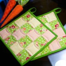 Purchased tacks have many advantages, but often the shape is not the same, the seam is not the highest quality, the colors are not chosen as we would like in the context of the kitchen. Then there is nothing left but to get down to the work itself. And now about the patchwork itself. This is patchwork, which allows you to create a product from different pieces of fabric. Stripes of fabric are connected into small blocks, and the block forms a particular geometric figure. Pillows, blankets, bedspreads, capes, needle beds and, of course, kitchen potholders are sewn in this style.