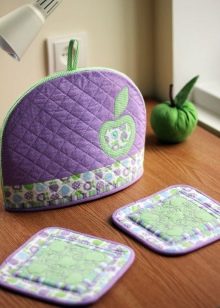 - A mitten in the form of a teapot. Specifically, there is almost no patchwork here, but copyright alterations are only welcome. Perfectly looks like a decor on a wall, but at the same time is convenient to use.