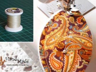 - The edge of the product is trimmed, the excess trim is trimmed. The part must be folded in half by inserting a loop of braid into the corner.Sew it up with a machine seam.