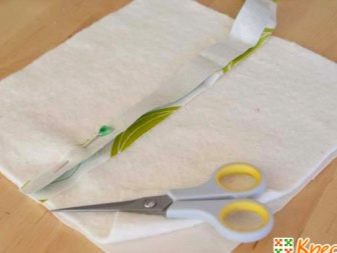 - Two strips with the front sides dock to each other in the center of the batting square. Sewing goes on one side. The upper strip should be bent and iron the seam. The other strip is laid face down on the attached one, and the strips are again sewn along the edge. The last strip bends, the seam is smoothed. With the other part of the tack, everything follows the same algorithm.