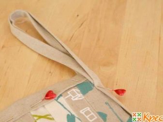 - Next, the border is bent to the front side and this is done until the last part of it is sewn, almost reaching the corner. Cut excess, leaving 9-10 cm borders on the loop. It remains only to form a loop and sew a border to the face of the product.
