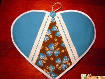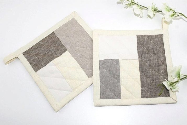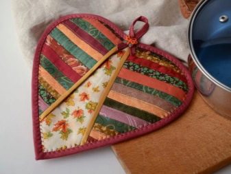 Any dense fabric is suitable for sewing tack from flaps. If it is a natural material, fine. But semi-synthetic fabrics are also suitable. Thermally resistant linen and cotton. If new material is taken, it should be washed, as it may shrink. Denim should not be neglected, it is in the patchwork that it looks organic. It is enough to rip an old skirt or jeans - and denim shreds will become part of the kitchen accessory.