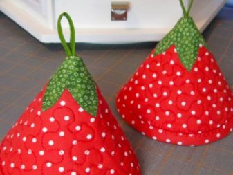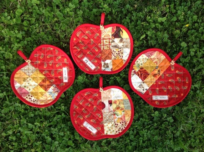 Beginning seamstresses use ready-made patterns and patterns. In the proposed technique, it is interesting to sew a New Year’s tack or Easter tack (seasonal kitchen decor), you can make a round product or a tack in the shape of a star, a triangle. If there are children in the house, it is interesting to please their look with an accessory in the form of a mouse or a bunny, chicken or fish.