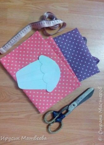 - You can draw a cupcake pattern independently, the shape and size are arbitrary. The fabric must be folded in half, marked and cut out the part. Do the same with sintepon.