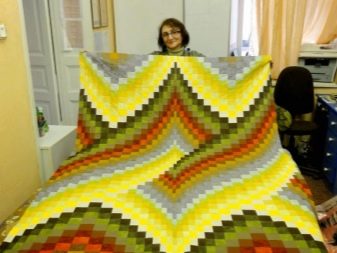 When creating a spectacular patchwork bargello, the most the main thing is to choose the right material. Here, the fantasy of needlewomen is almost unlimited, since any color range can be used in the work. Traditionally, for the sewing of blankets and plaids, several shades are selected in a single gamut, ranging from light to dark. However, if you wish, you can always take contrasting or complementary tones of different colors - there are no strict rules, the colors are combined at the discretion of the craftswoman, while the technique allows the most daring experiments.