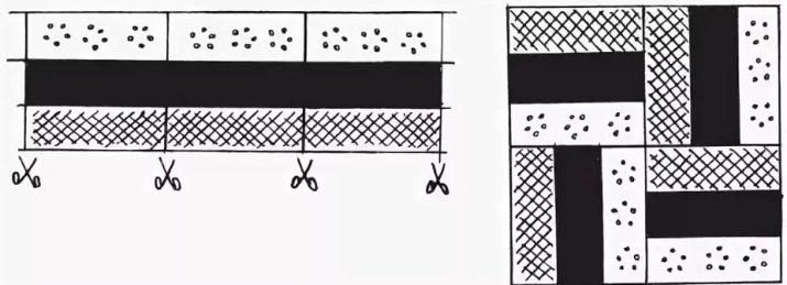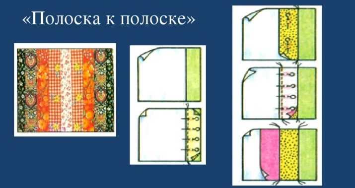 Before mastering the original style, experienced craftswomen advise you to get acquainted with the formation of blocks by the strip-to-strip method, which is one of the simplest in patchwork in principle, it involves connecting several bands sequentially stitched together.