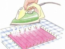 - Cotton and wool threads are best steamed. The method is not much different from the previous one. Pin the element upside down on the ironing board. To steam the motive with an iron, trying not to touch the part itself. If the item needs to be ironed, cover it with a cloth and set the temperature indicated on the package of yarn. Better to take non-shedding material. When the part dries, remove the pins.