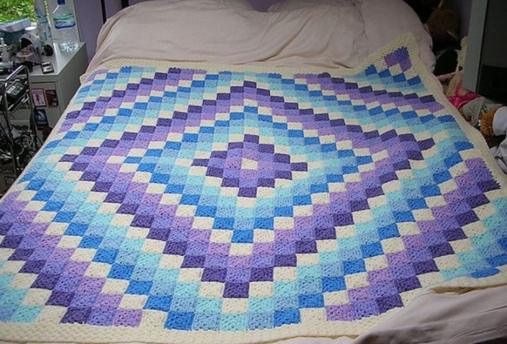 The main advantage of knitting is the ability to make different motives. They can be from squares, rhombuses, hexagons and triangles. The most common is the first option. For the round part, you will have to try a lot. A patchwork of shreds of fabric is inferior to knitted in another way. The variety of patterns gives a huge scope for creativity.