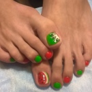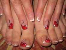 Modern stylists argue that the beauty of toenails should bring joy not only to the owner of the pedicure, but also to the people around her, especially when it comes to public places. Therefore, the picture should be not only beautiful, but also tasty. The fruit idea looks very interesting. On a large nail, depict a watermelon, with several pieces cut, cherries or a bunch of grapes.