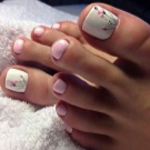 - White. In itself, this color causes only warm emotions. White shades indicate purity and innocence. A pedicure with a snow-white base looks very rich, especially if you decorate your thumb with a thin golden ring. Basically, this color attracts the attention of young girls who are trying to emphasize their positive qualities. A white pedicure looks very nice with additional inserts in the form of rhinestones, bright stripes or stickers.