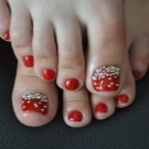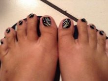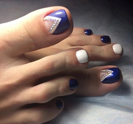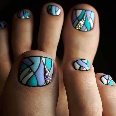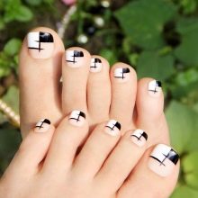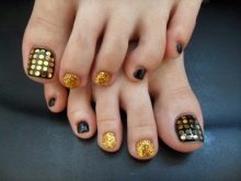 - In this case, the theme of elegance and sophistication is traced. With such a pedicure you can go to any evening party. The originality of the picture and the strictly matching colors will be able to bring a special zest to any outfit.