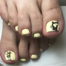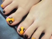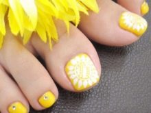 Quite often, yellow shades become the basis for the floral design of the pedicure, while the master makes great efforts to make the flowers seem realistic, and the yellow background was associated with the brightness of summer.