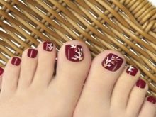 Many stylists when developing an unusual design for a pedicure offer their clients to use a burgundy varnish for the foundation, while the result exceeds all expectations.