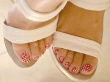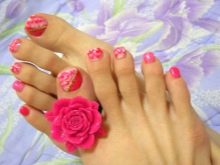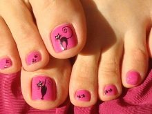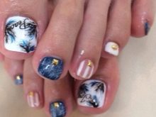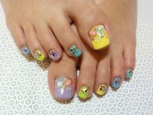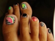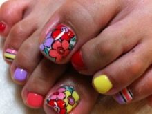 - With such a pedicure you can go to any fun place. It is suitable for hiking in a nightclub, for a beach party or an incendiary pastime. A variety of color shades and the use of various techniques make nail design more juicy and attractive.