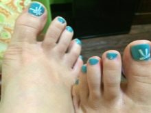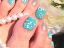 - Turquoise. This color refers to shades that are rarely used for pedicures. But this season there is a coup, and the turquoise color is in demand among the fair sex. He is able to emphasize the fragility and vulnerability of young beauties, as well as the firmness and determination of older women. An important feature of the turquoise color is the possibility of using all existing pedicure techniques, ladies only need to choose the most interesting option.