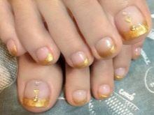 - Gold, silver and bronze. Undoubtedly, these colors speak of high peaks, serious status and leading positions. For women's pedicure, the use of these shades allows you to emphasize the static nature of any style. The use of color glitter in the French pedicure technique will become quite interesting.