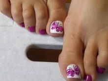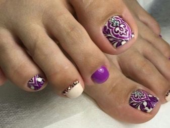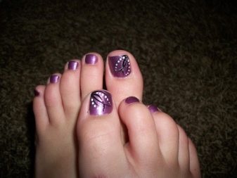 - Purple. This color in itself is rich and rich. Violet palette has a lot of positive qualities. Its shades can be applied with a monophonic coating on the nails, but to give the pedicure a rich appearance, you should use jewelry.