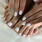 Successfully made manicure and pedicure in a single style, first of all, welcomes and reflects the winter mood, which can be reflected on the nails as translucent tender snowflakes, cute snowmen, various symbols of the New Year holidays, such as Christmas trees, deers, bright Christmas toys. The winter version of manicure and pedicure includes nail coating in the style of “cat's eye”. If we talk about the palette of Christmas colors, then it is very diverse: gray, beige, silver, pink. Matte drawings that are made in dark colors are very relevant this season. Red is always in fashion, which is used in French and moonlit nails.