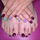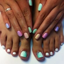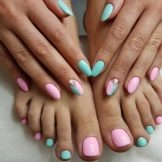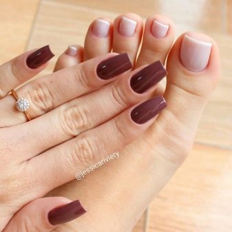 - You should combine a variety of combinations of color schemes, but the main rule should be that the pedicure must be designed one or two tones darker than the manicure.