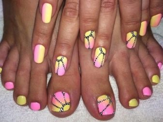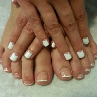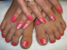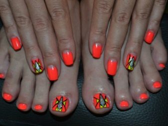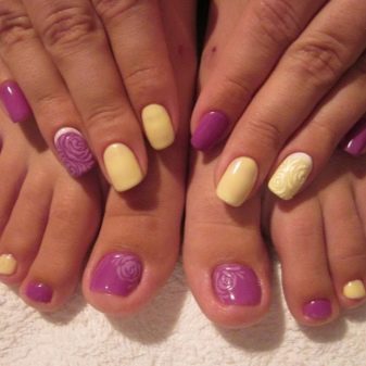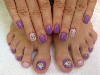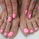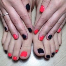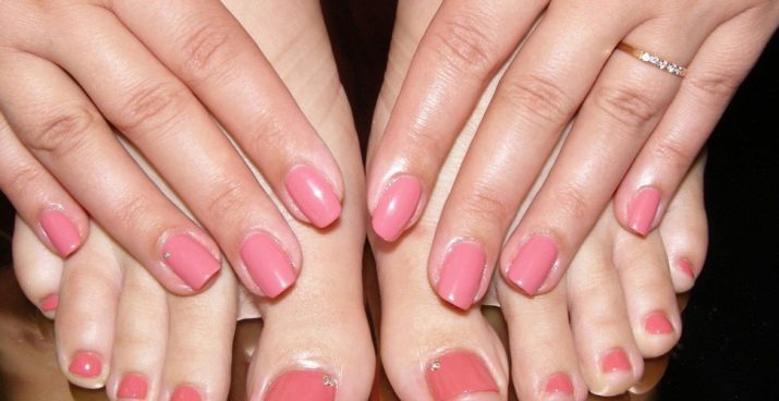 - To create a harmonious single style of manicure and pedicure, stylists provide strict rules for the combination of tones and textures. Classic colors should be used (all shades of red, beige, pink, purple, coral), it is not recommended to apply continuous shine and causing neon.
