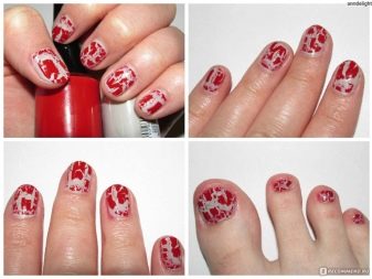 This varnish should be used to give a snake effect, which will be obtained when applied to a black base. It should be noted that if you decide to decorate your nails with rhinestones or bright patterns, it is advisable to place them only on your hands or only on your feet, otherwise the manicure-pedicure will look very glamorous or too shocking.