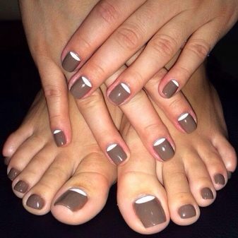 Manicure and pedicure in one tone is a classic style.