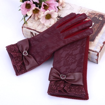 On the issue of decoration, manufacturers do not limit their imagination. Gloves are decorated with accessories - straps, rivets, fasteners, laces, bows, flowers.