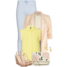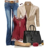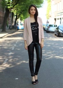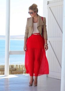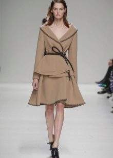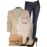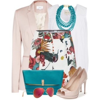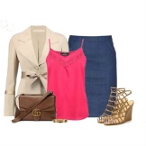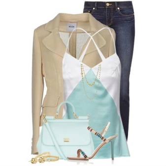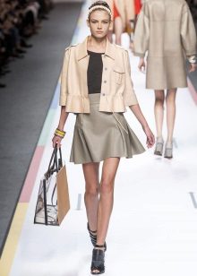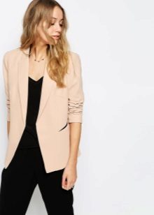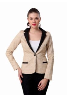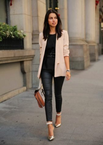 A delicate beige jacket will make an excellent company in a full skirt or pencil skirt. If you chose the first option, do not forget to emphasize the waist with a belt.